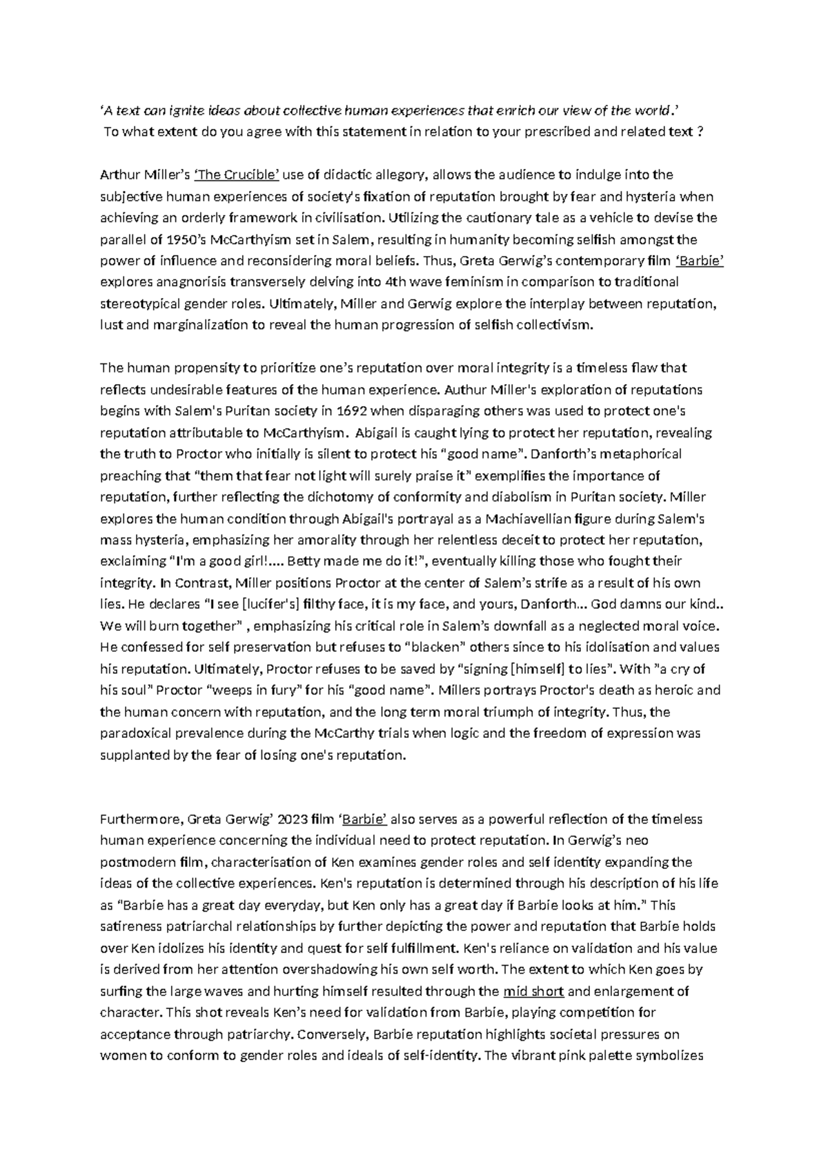 Crucible Essay: Exploring Reputation and Human Experience in Miller and ...