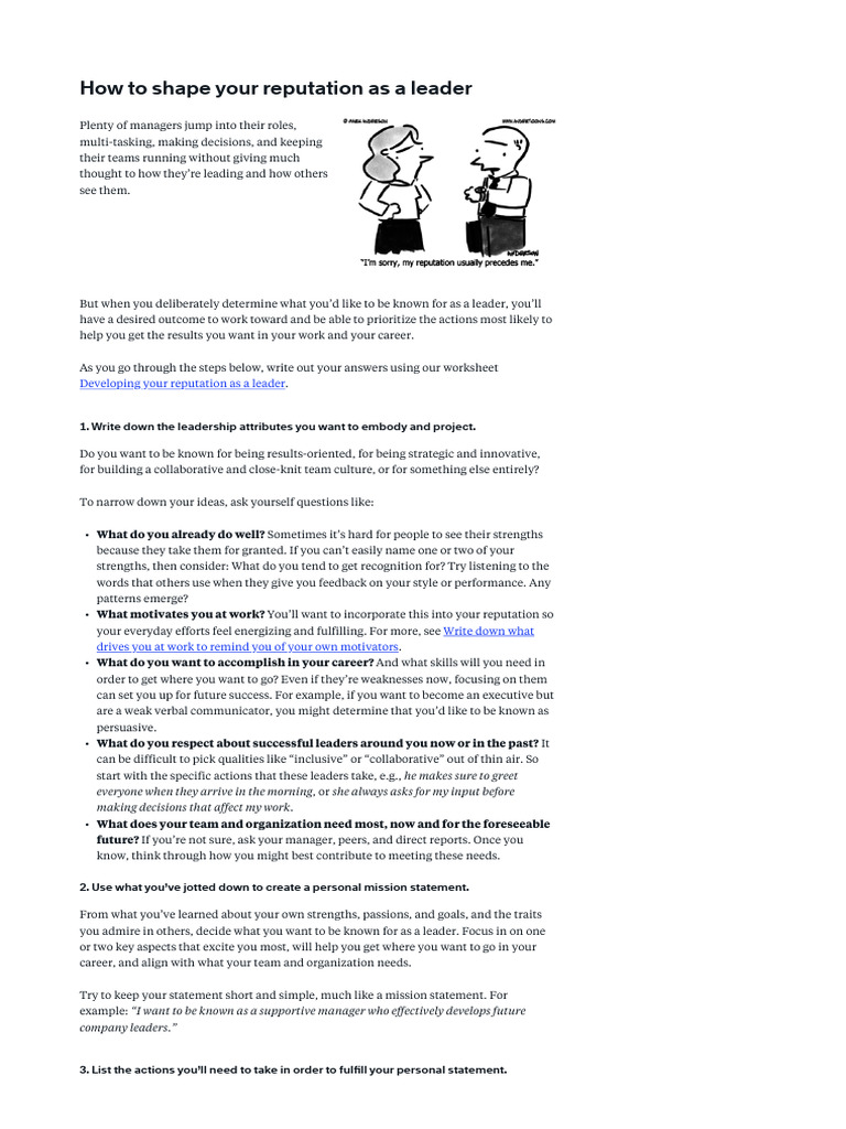 How To Shape Your Reputation As A Leader | PDF | Goal | Leadership