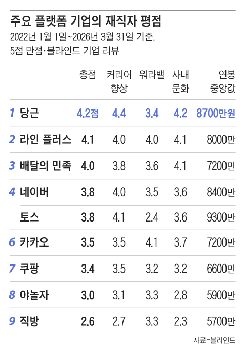 Daangn tops employee reputation, Toss most desired workplace