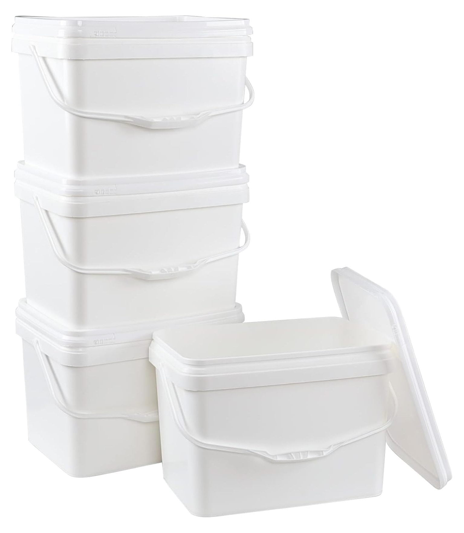 4-Pack 5 Gallon Plastic Rectangular Bucket Pail with Snap Lid, Square ...