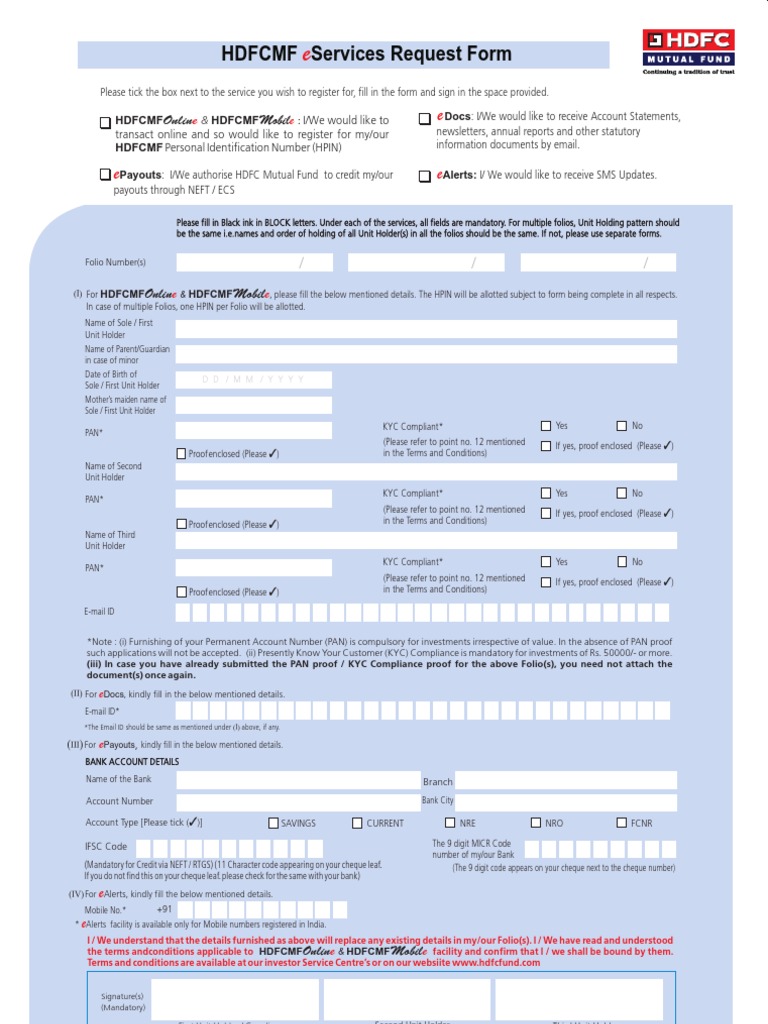 HDFCMF Services Request Form: Onlin | PDF | Mutual Funds | Cheque