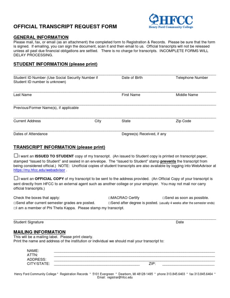 Request for Transcript Templates PDF. download Fill and print for free ...