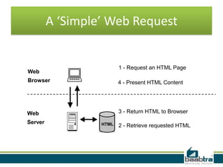 alt: web client makes request to server, gets back HTML response ...