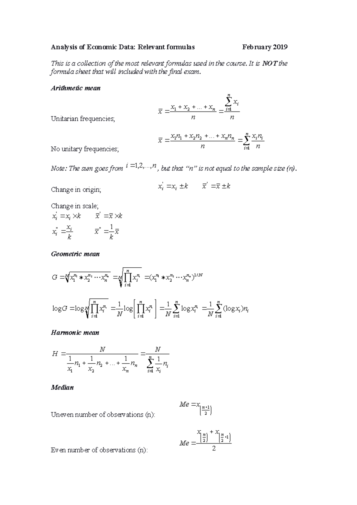 Formulas 2019 ENG 001 - Needed fórmulas - Analysis of Economic Data ...