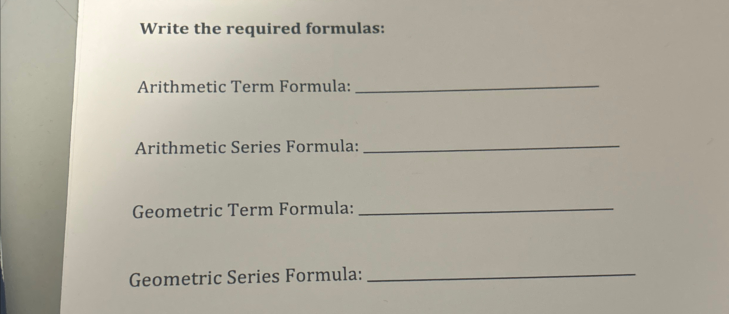 Solved Write the required formulas:Arithmetic Term Formula: | Chegg.com