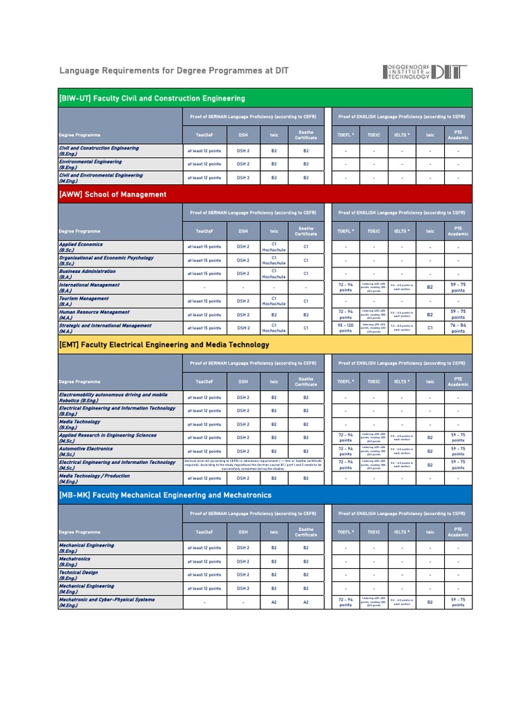 Language Requirements For Degree Programmes at DIT: (BIW-UT) Faculty ...