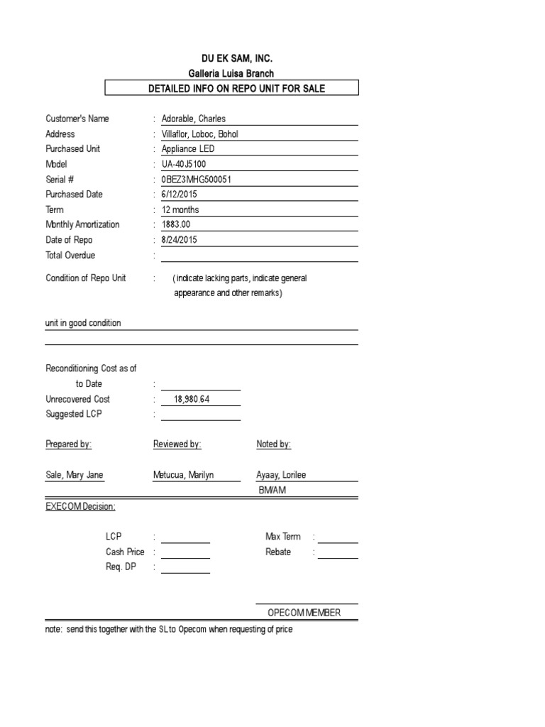 Request Repo Form | PDF | Rebate (Marketing) | Pricing