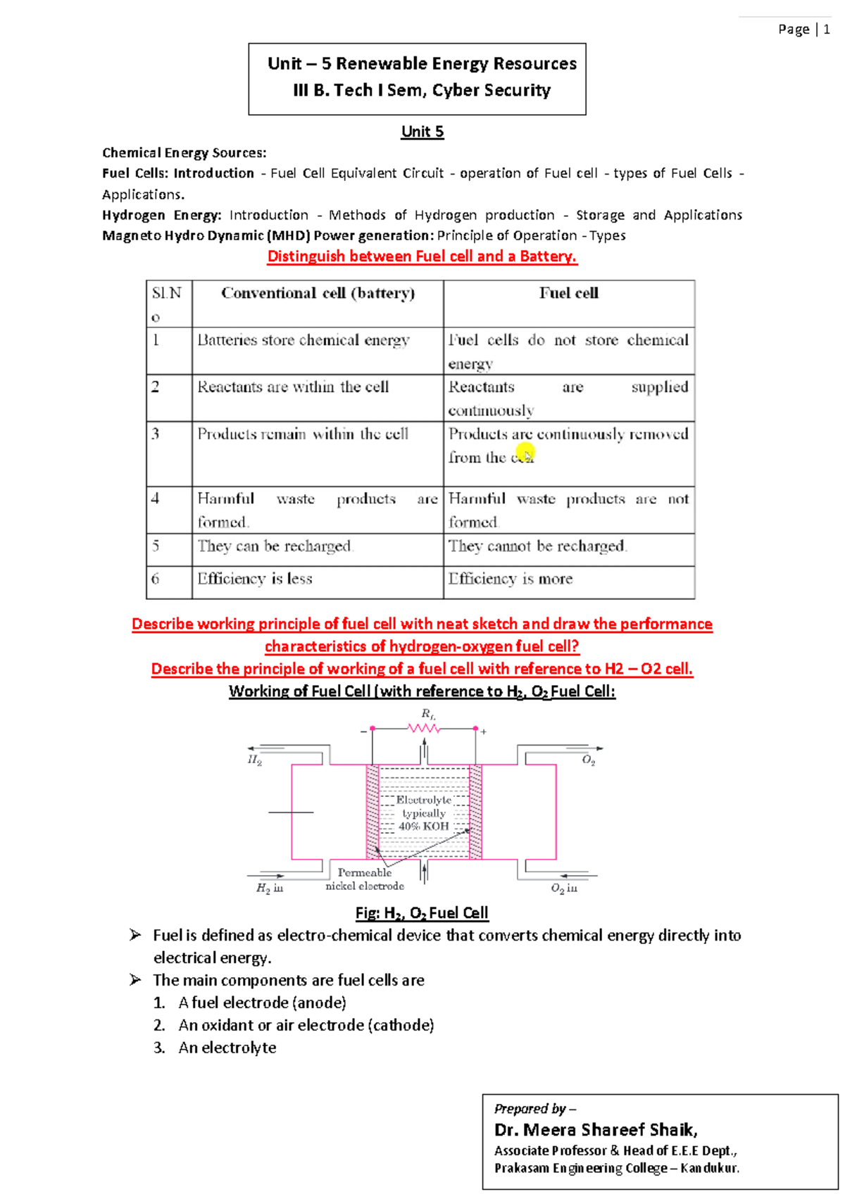 RES - Unit-V Material | PDF | Fuel Cell | Electrode
