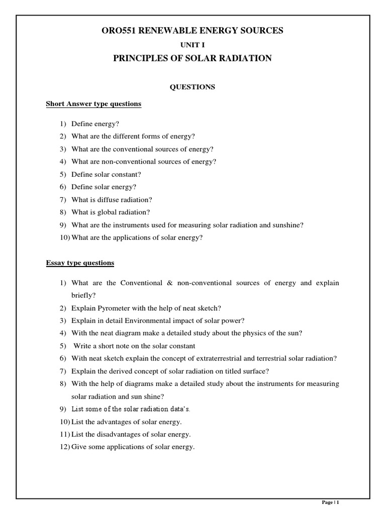 RES Unit 1 | Download Free PDF | Sun | Radiation