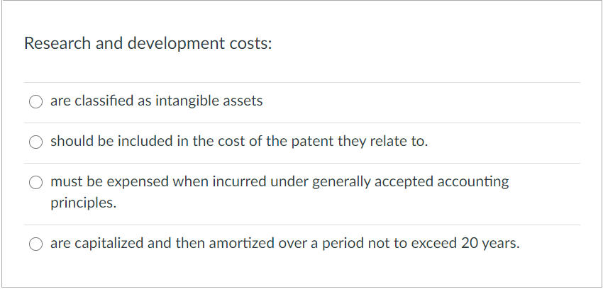 Solved Research and development costs: are classified as | Chegg.com