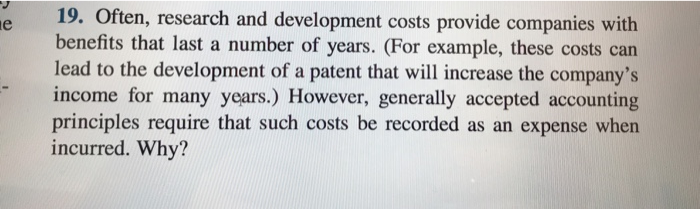 Solved 19. Often, research and development costs provide | Chegg.com