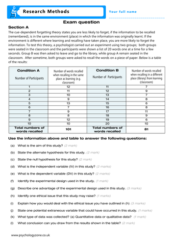 Research Methods Exam Questions - A Level Psychology Practice Questions ...