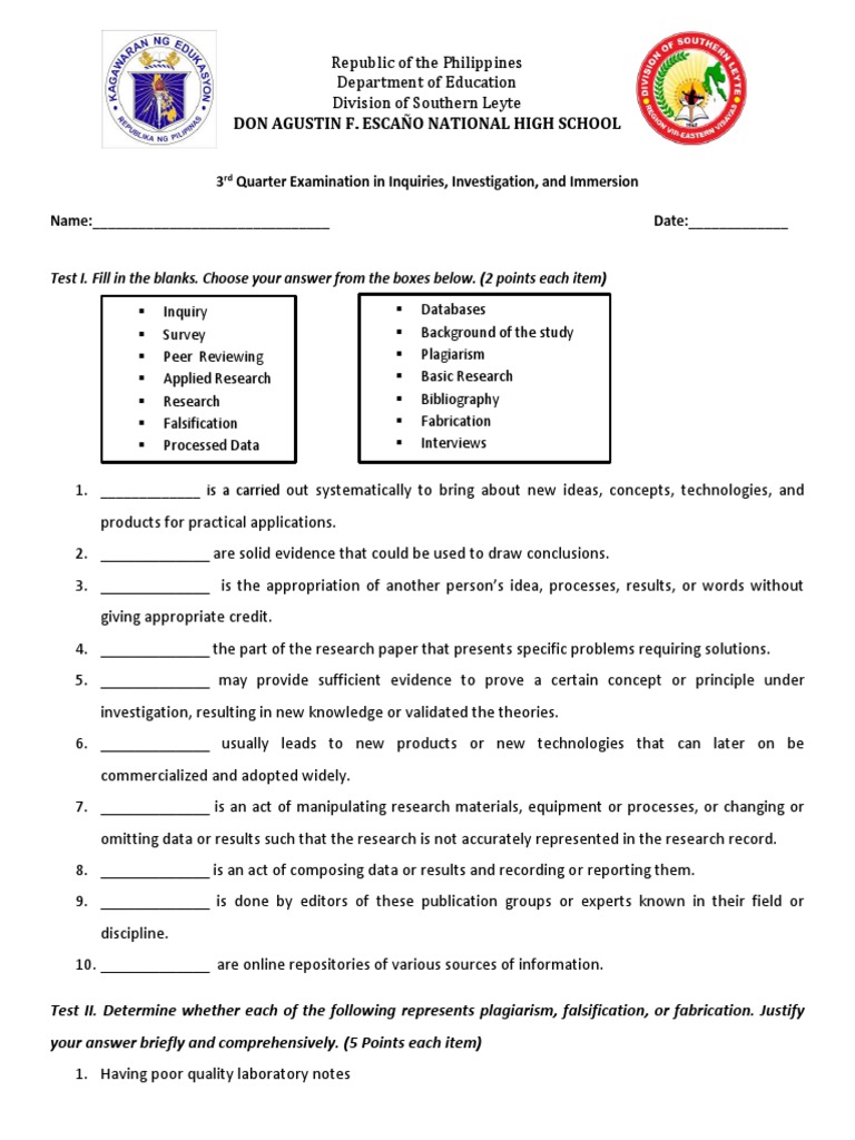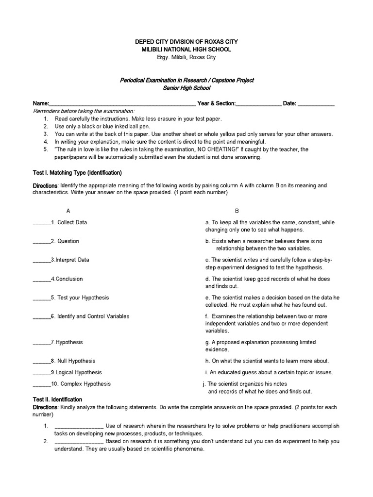 3RD Quarter Exam For Grade Xii Research | PDF | Hypothesis | Science