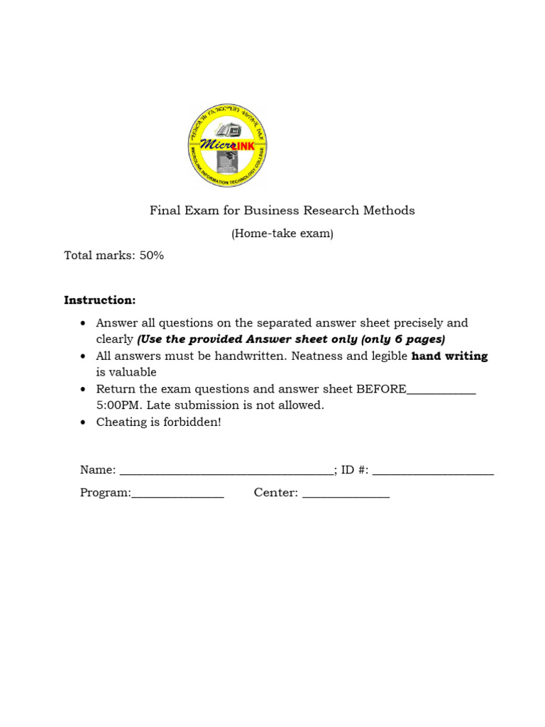 Guide on Research Methods Final Exam with Practical Examples | Course Hero
