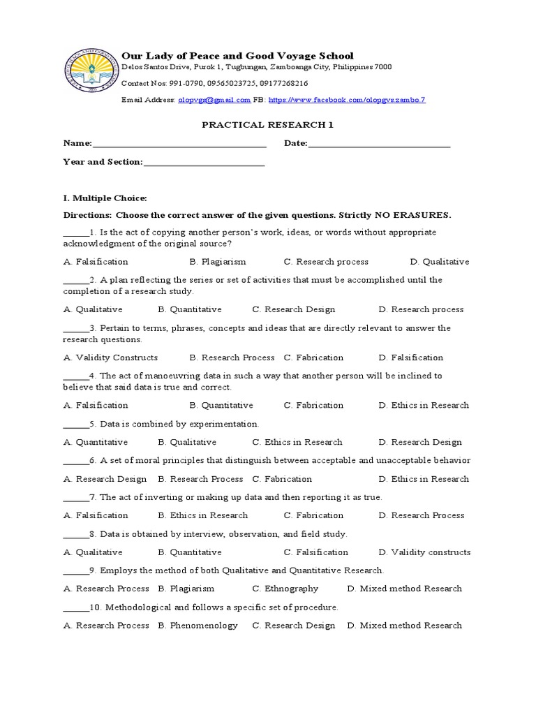 Practical Research Exam 1st Quarter | PDF | Qualitative Research ...