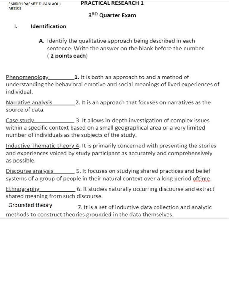 Practical Research I Exam Overview | PDF | Qualitative Research | Question
