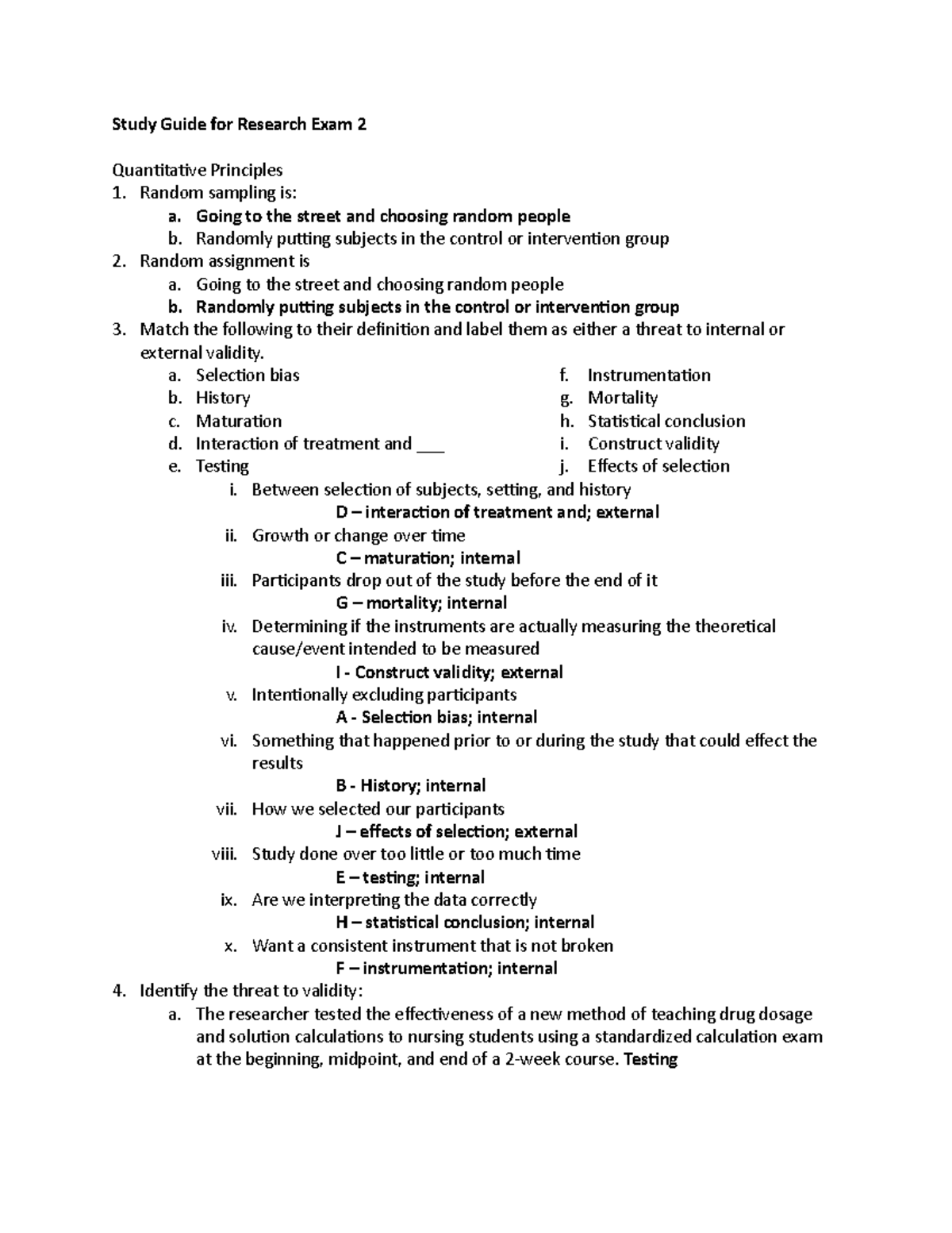 SG for Research Exam 2 - Study Guide for Research Exam 2 Quantitative ...