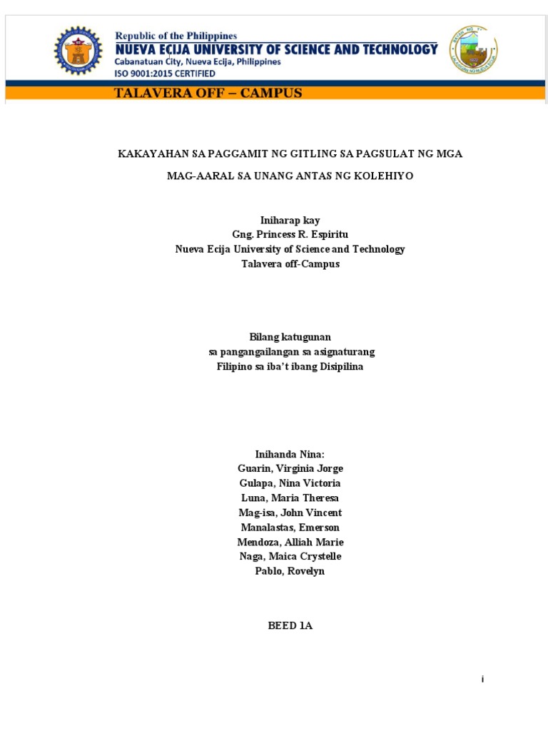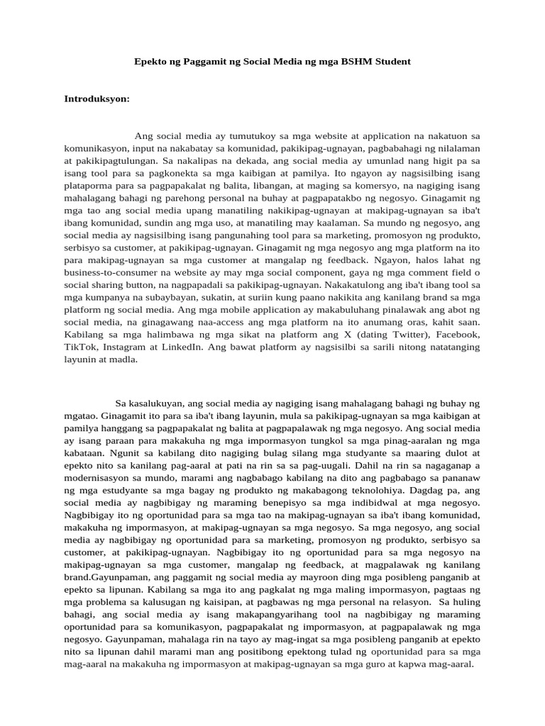 Research Paper Tagalog Sample - Halimbawa Ng Isang Research Or Term ...