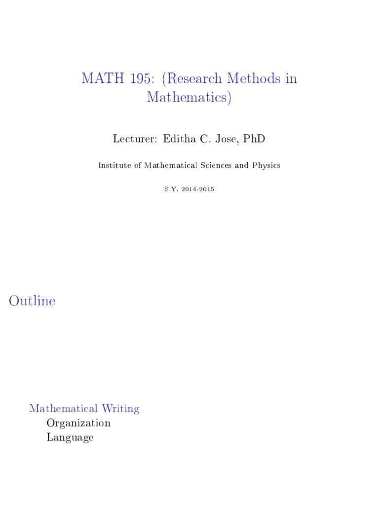 Math 195: (Research Methods in Mathematics) : Lecturer: Editha C. Jose ...
