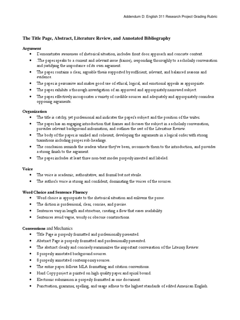 Prospectus Addendum D Research Prospectus Grading Rubric | PDF ...
