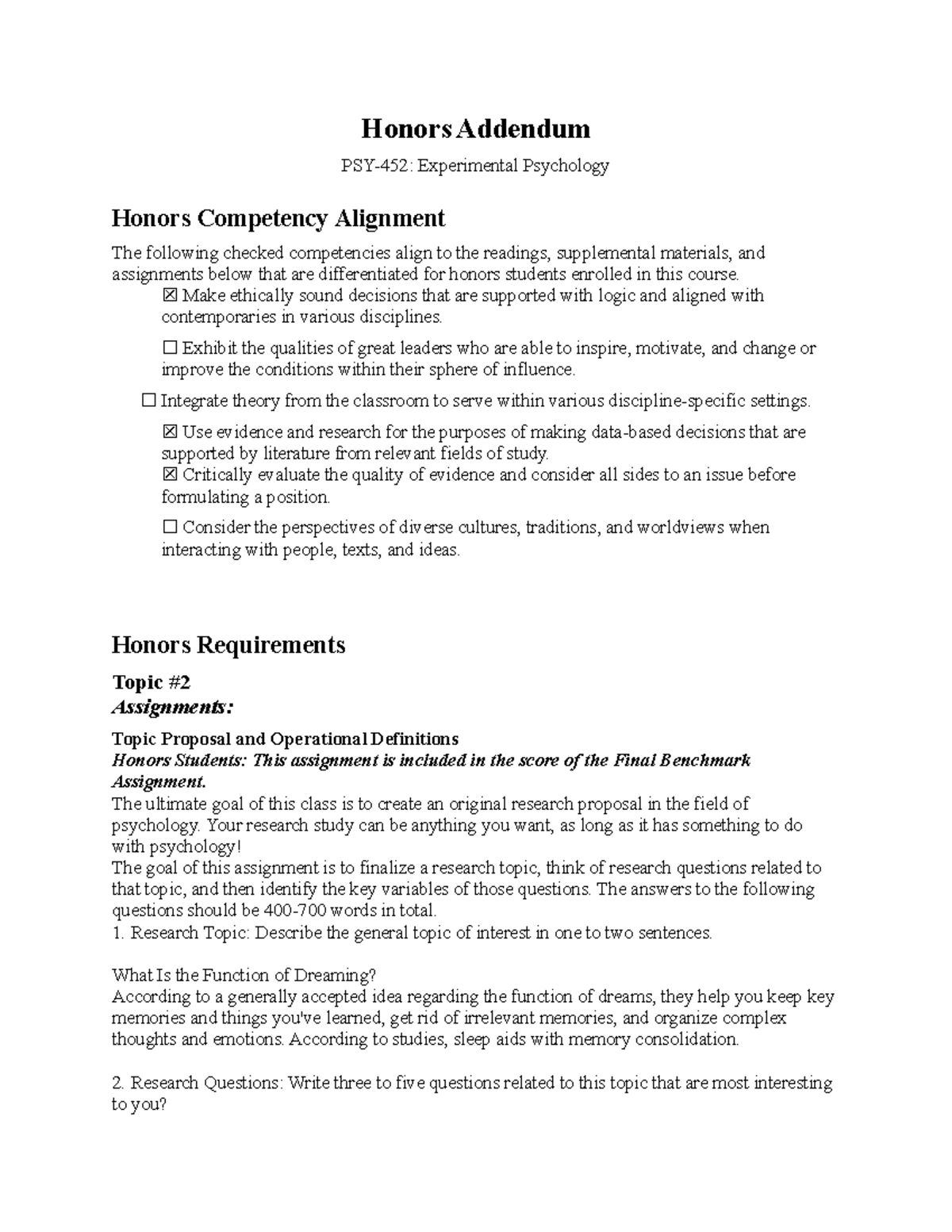 PSY 452 H Honors Addendum - Research Proposal Guidelines - Studocu