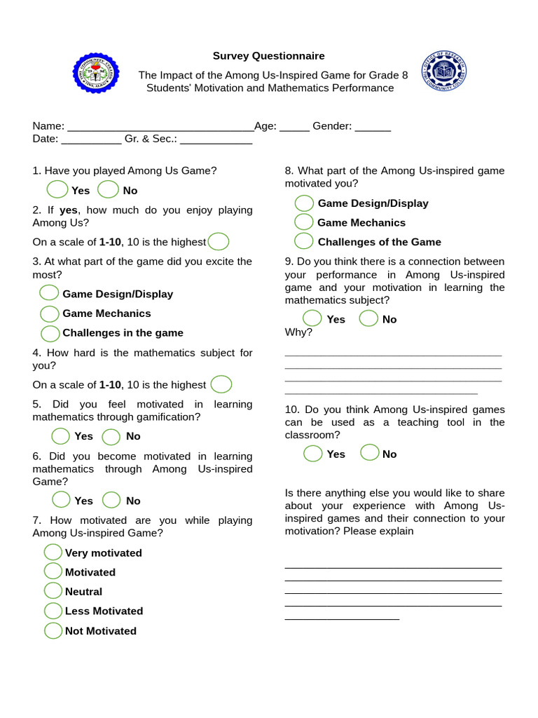 Practical Research 1 Survey Questionnaire Group 4 - The Effects of ...