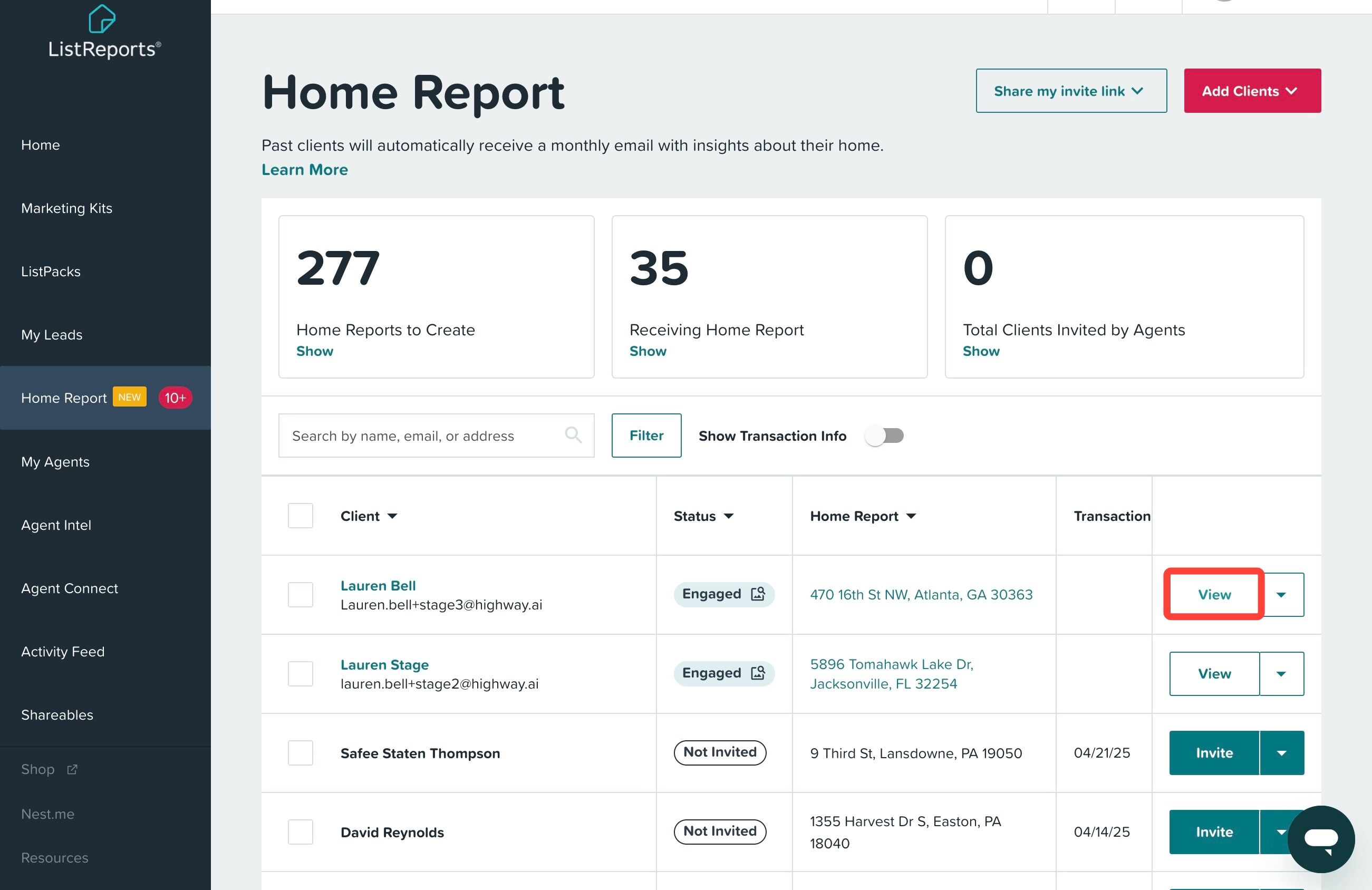 Resend an Invitation or Monthly Home Report to your Client – ListReports