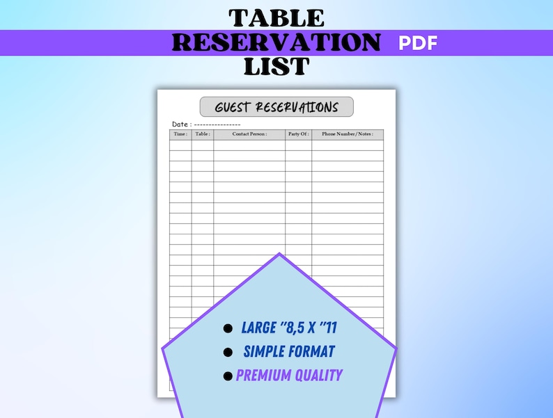 Table Reservation List Printable PDF | A4 & 8.5"x11" | Ready to Print ...