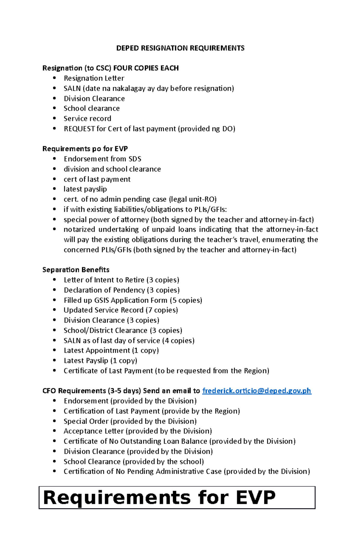 DepEd Resignation Requirements and Submission Guidelines - Studocu