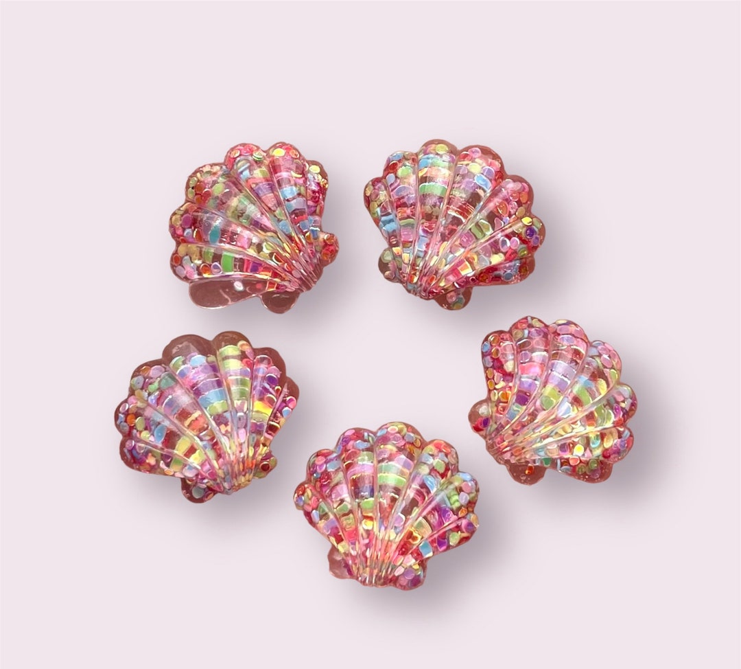 seashell pink glitter cabochons set of 15, resin shell, 17mm shell ...