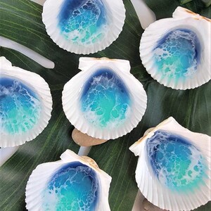 Small Ocean Resin Shell Waves Ring Dish Beach Epoxy Handmade Scallop ...