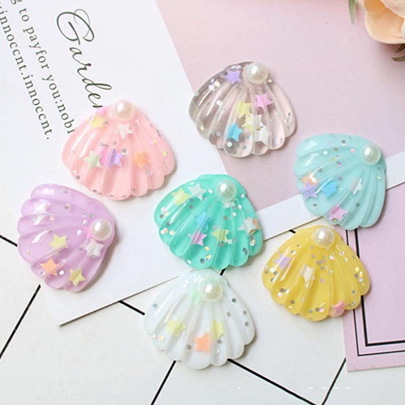 10 Pcs Random Color Resin Clam Shell Pearl Plastic Cabochon Fish Tail ...