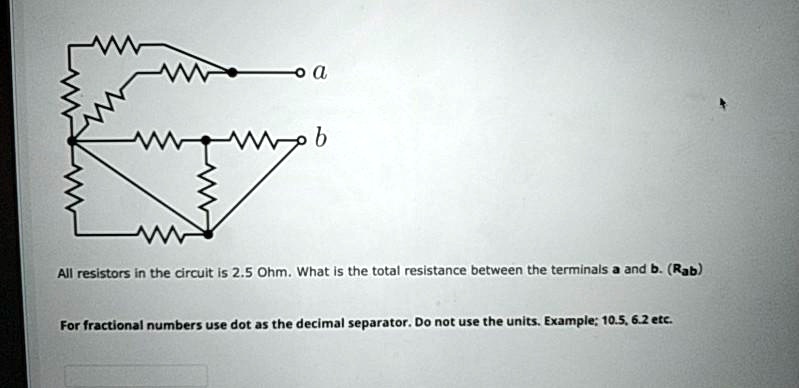 SOLVED: All resistors in the circuit are 2.5 Ohms. What is the total ...
