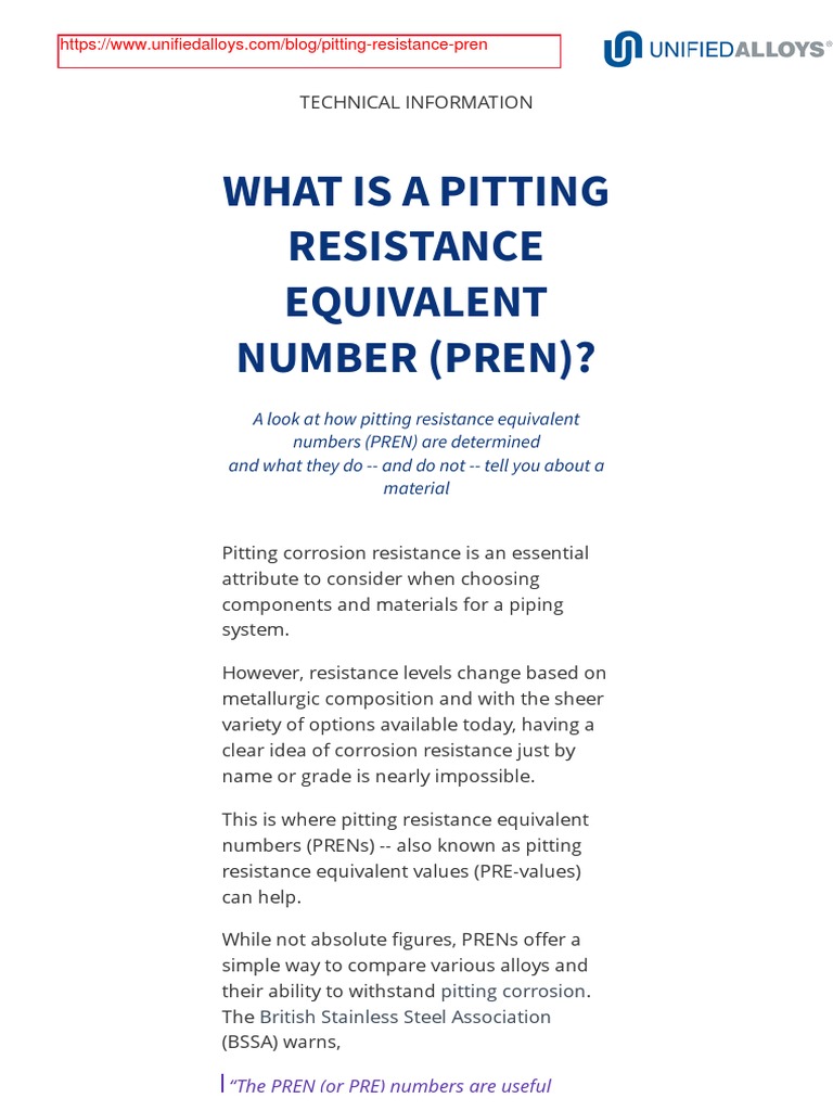 What Is A Pitting Resistance Equivalent Number (PREN) - Unified Alloys ...