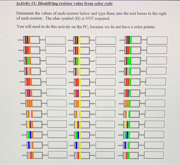 Solved Activity \#1: Identifving resistor value from color | Chegg.com