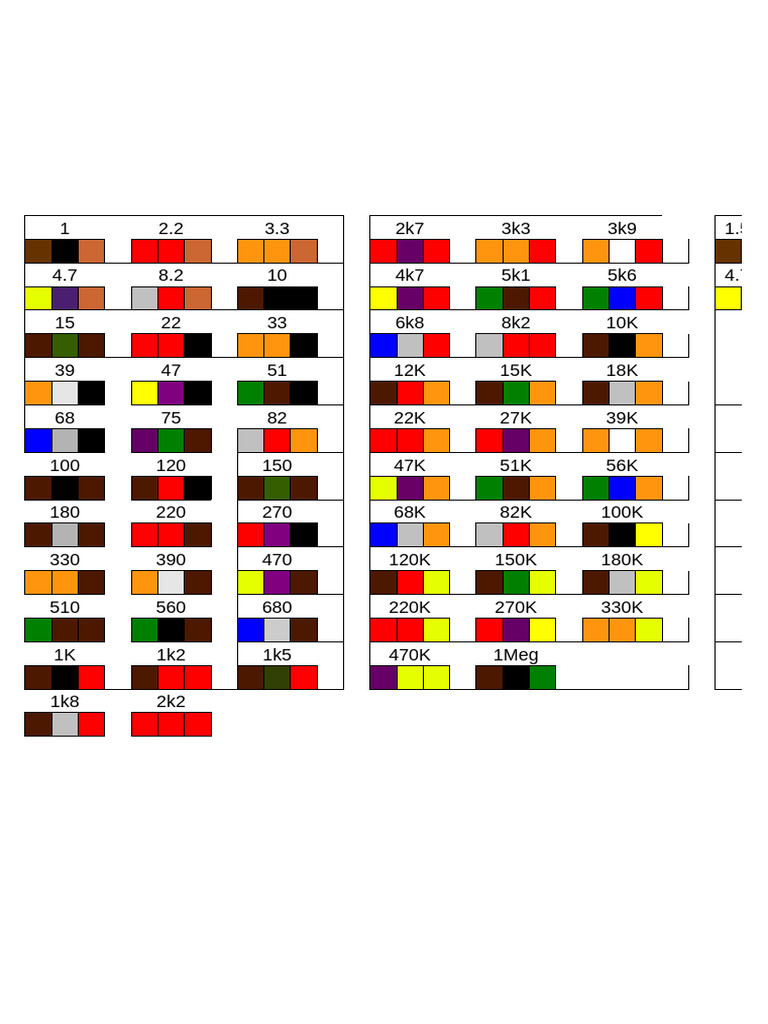 Resistor Color Code - 4 Band, 5 Band and 6 Band - Free Download PDF ...