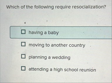 Solved Question 3Resocialization occurs in which of the | Chegg.com
