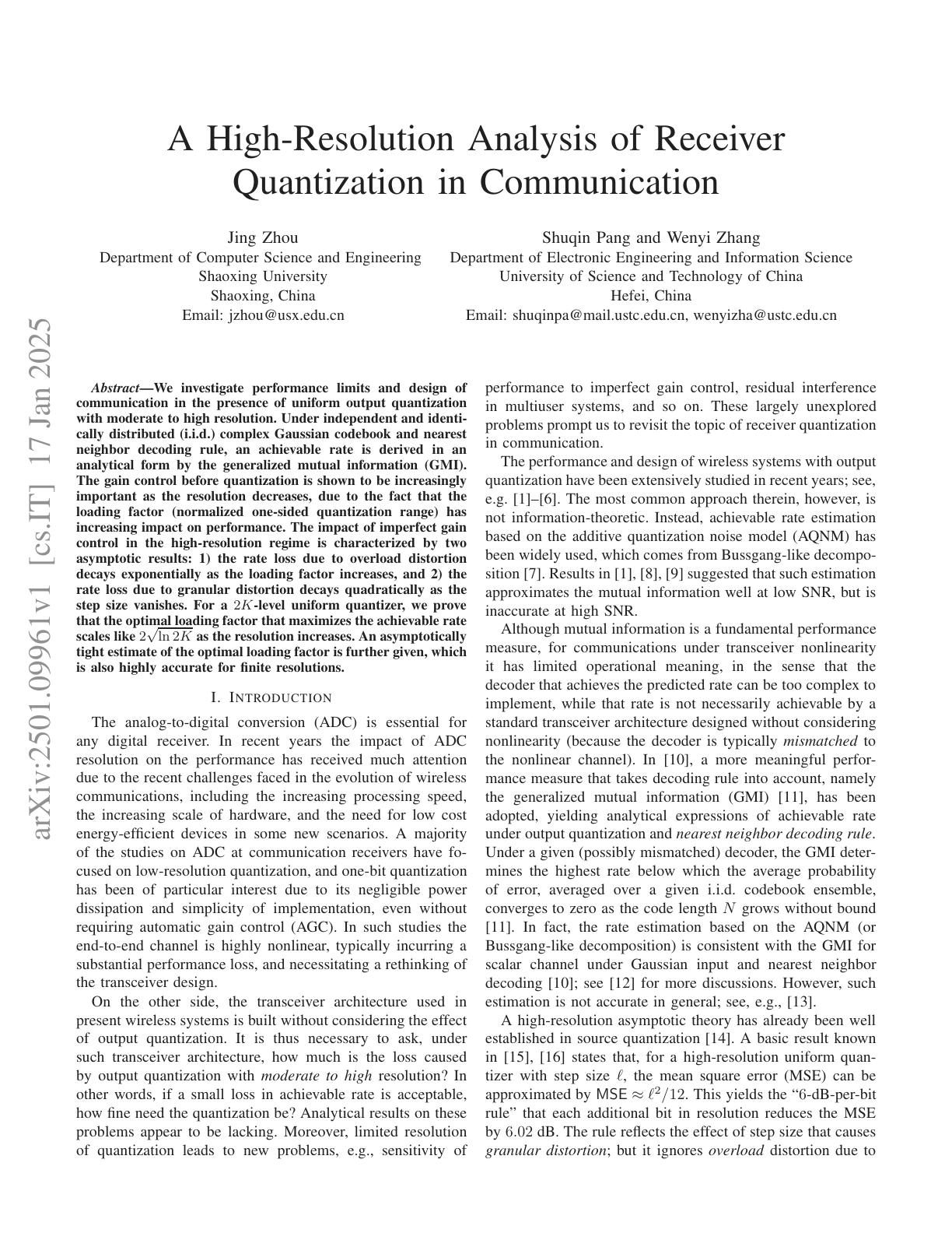 A High-Resolution Analysis of Receiver Quantization in Communication