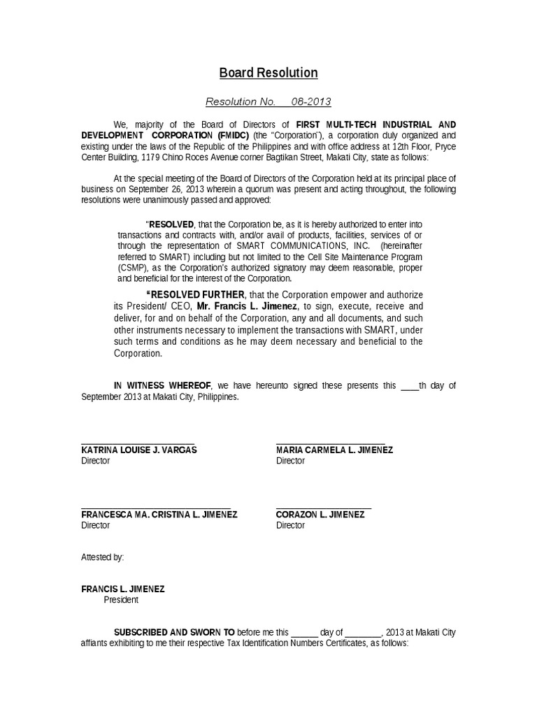 Board Resolution Sample Philippines Master Of Template Document - Free ...
