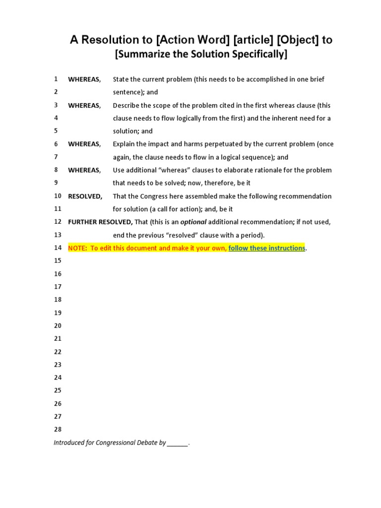 Resolution for Congressional Action | PDF | Teaching Methods & Materials