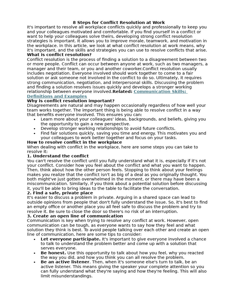 8 Steps for Conflict Resolution at Work | PDF | Conflict Resolution ...