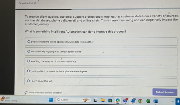 Solved Question 12 of 15To resolve client queries, customer | Chegg.com