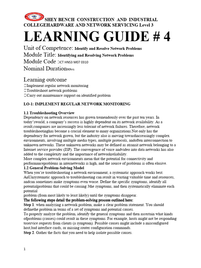 Identify and Resolve Network Problems LO1 | PDF | Computer Network ...