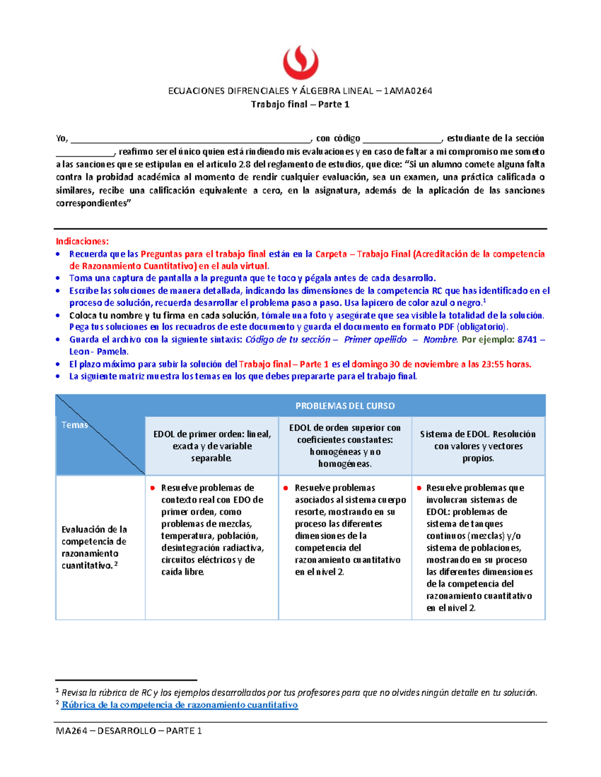 MA264 Trabajo Final Parte 1: Ecuaciones Diferenciales y Algebra Lineal ...