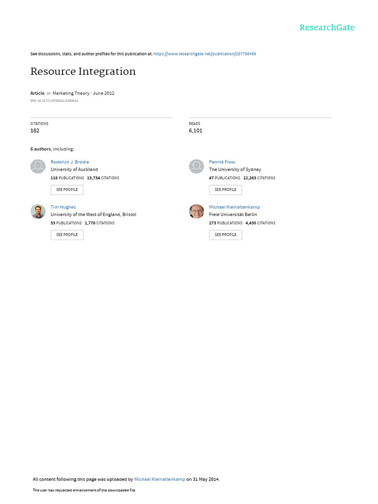 Resource integration framework (Kleinaltenkamp et al., 2012) | Download ...