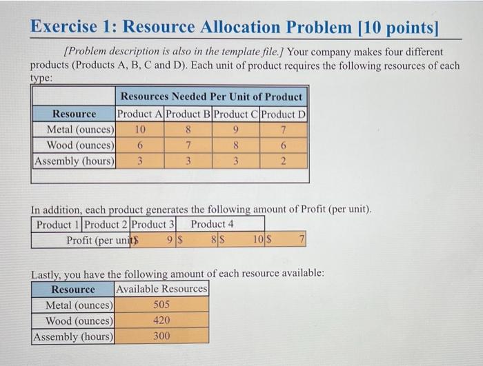Solved Exercise 1: Resource Allocation Problem [10 points] | Chegg.com