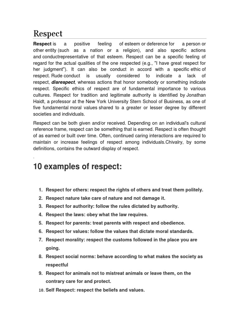 10 Examples of Respect | PDF | Value (Ethics) | Morality