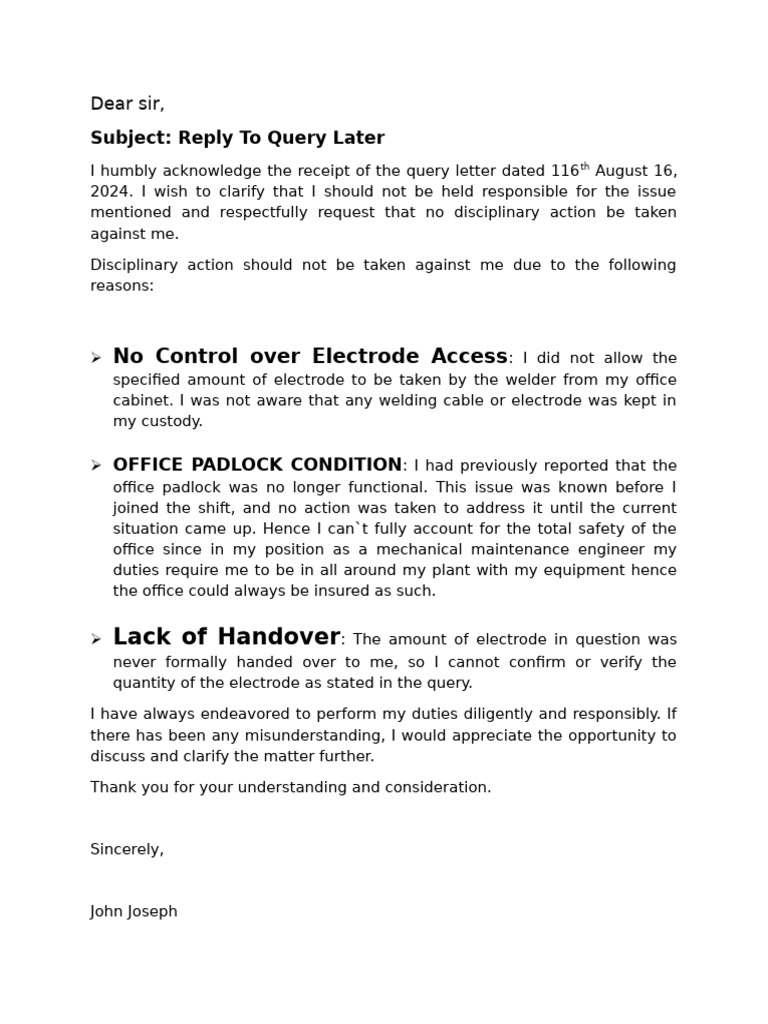 How to Reply and Answer a Query Letter from Your Boss at Work | Query ...