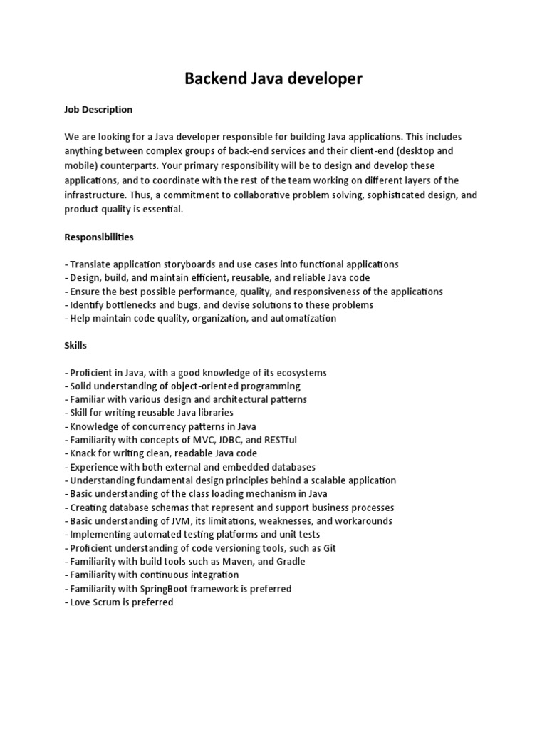 JD Backend Java Developer | PDF