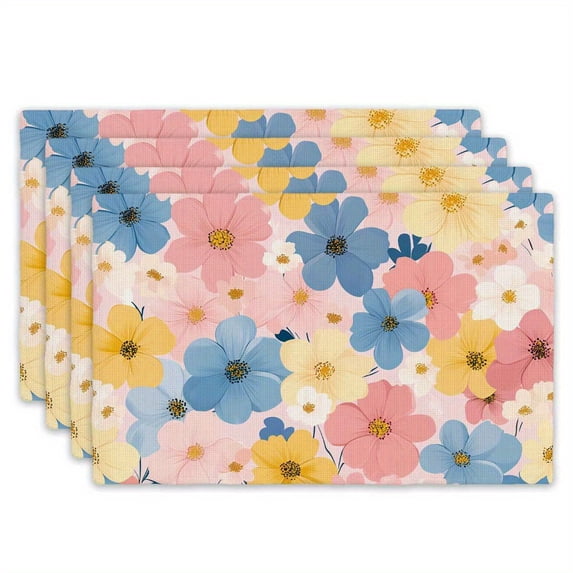 4pcs Rectangular Placemats with Fresh Blue and Pink Floral Elements ...
